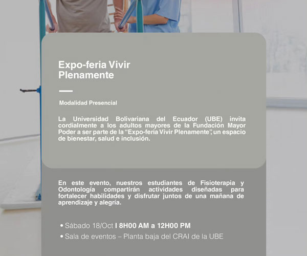 La Universidad Bolivariana del Ecuador (UBE) se llena de alegría al recibir a los adultos mayores de la Fundación Mayor Poder en la Expo-feria Vivir Plenamente.