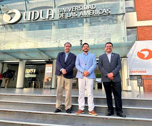 Durante su visita, atendió la invitación del Ph.D. Lorenzo Reyes, decano de la Facultad de Ingeniería y Negocios de la Universidad de las Américas, para conocer su campus y generar un intercambio académico en metodologías de enseñanza, investigación y vinculación. Este encuentro abre nuevas posibilidades de cooperación interinstitucional a nivel regional.