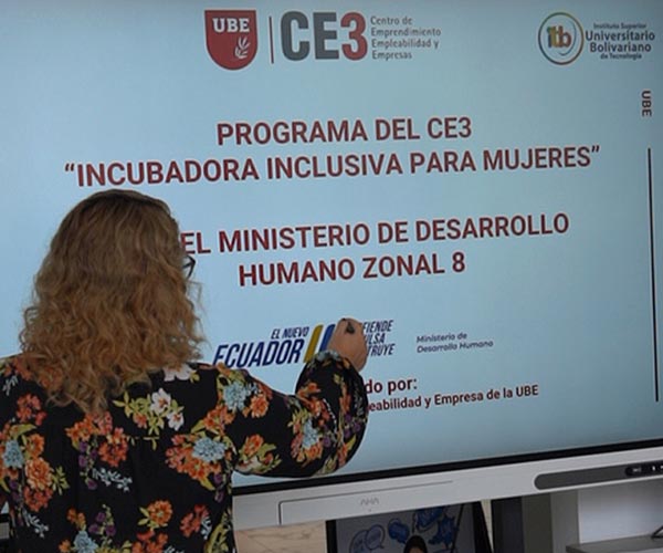 La Universidad Bolivariana del Ecuador (UBE), a través del Centro de Emprendimiento, Empleabilidad y Empresas (CE3), en alianza con el ITB y el Ministerio de Desarrollo Humano celebró la culminación de la primera cohorte 2025 del programa “Incubadora Inclusiva”, cuyos últimos talleres se desarrollaron los días 13 y 14 de noviembre en el campus de la UBE, el campus ITB Naval y el campus ITB Sur. Esta iniciativa forma parte del compromiso institucional por fortalecer las capacidades de mujeres emprendedoras en distintos territorios del país.