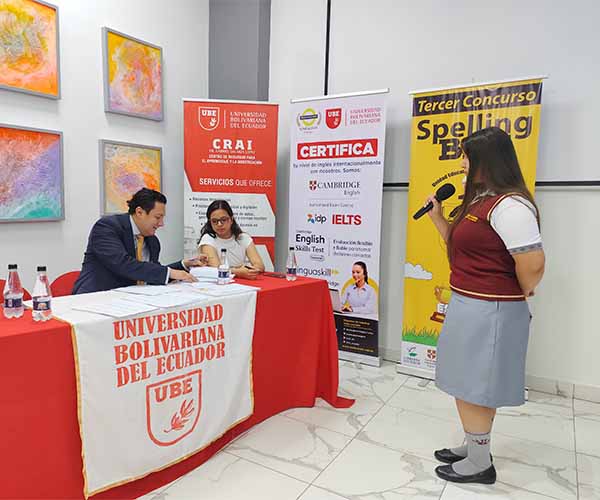 La Universidad Bolivariana del Ecuador (UBE) fue sede y coanfitriona del III Festival Intercolegial de Deletreo en Inglés, un espacio académico que reunió a estudiantes de varias instituciones educativas para demostrar sus habilidades y competencias en el idioma inglés. En esta edición también participó la Unidad Educativa Benjamín Bloom, representada por el Mgtr. Ángel Herrera, institución que cumple el rol de hosting del concurso en Durán.