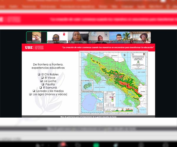La sesión virtual fue liderada por la Dra. Elsy Rodríguez, directora del proyecto de investigación y vinculación de la Mesa de Gobernanza, quien condujo la jornada académica, la cual fue gestionada desde la Coordinación de Servicios Académicos de la UBE, liderada por el Mgtr. Vallardo Villegas.