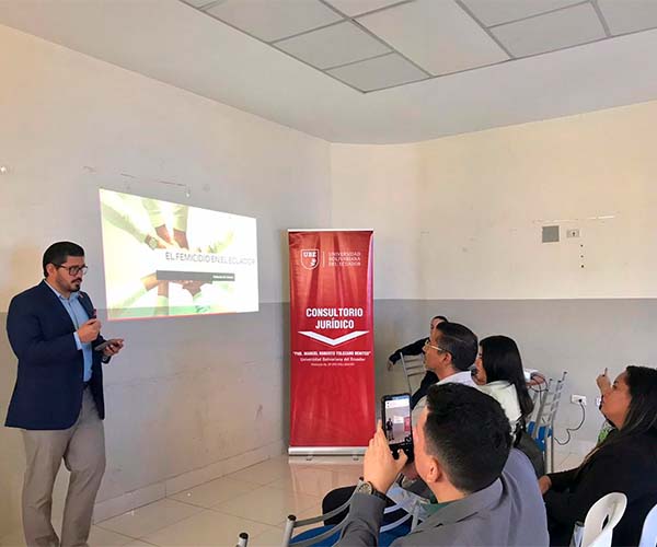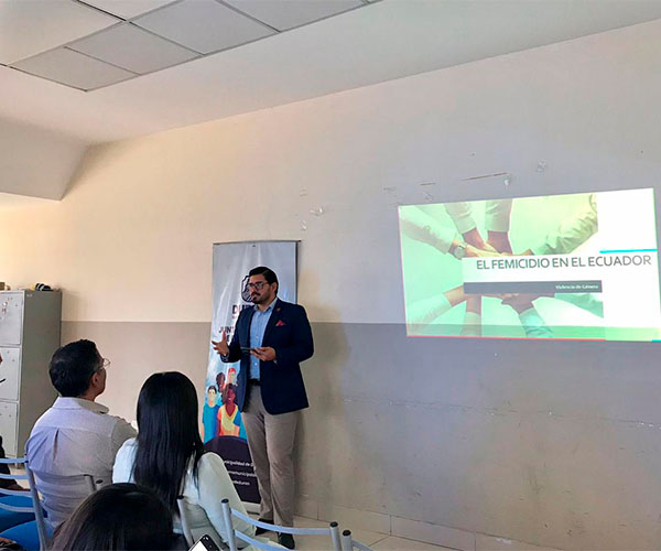 Durante este espacio de reflexión y formación, nuestro representante desarrolló una ponencia desde una perspectiva jurídica integral, en la que abordó los antecedentes históricos del femicidio, su reconocimiento en los instrumentos internacionales de derechos humanos y su tipificación como delito en el Código Orgánico Integral Penal (COIP).