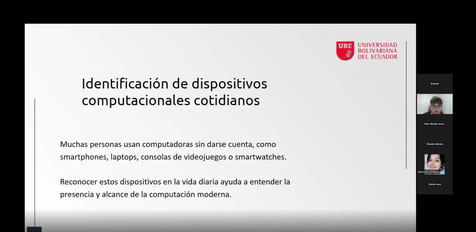 La Universidad Bolivariana del Ecuador (UBE) ejecutó el Proyecto de Vinculación con la Sociedad de la Carrera de Ingeniería en Sistemas Inteligentes, denominado “Intervenciones socioeducativas para la alfabetización digital a la sociedad ecuatoriana”, en articulación con el Ministerio de Desarrollo Humano (MDH).