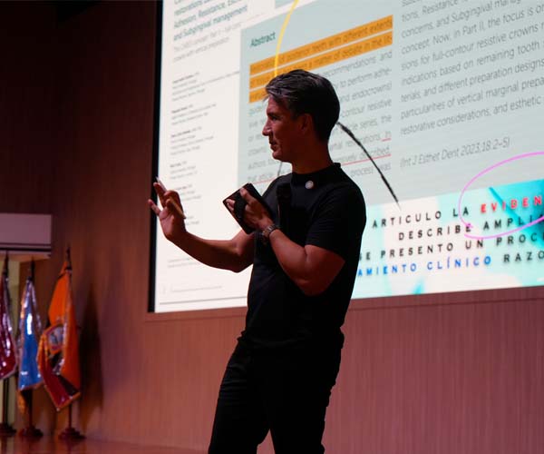 La jornada estuvo a cargo del Dr. Javier Lema, especialista en estética dental, quien compartió conocimientos teóricos y prácticos enfocados en técnicas actuales y protocolos clínicos aplicados a las restauraciones posteriores, aportando a la formación integral de los futuros profesionales.