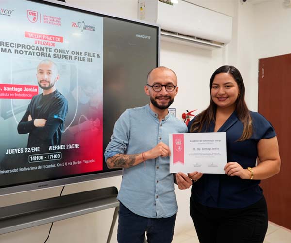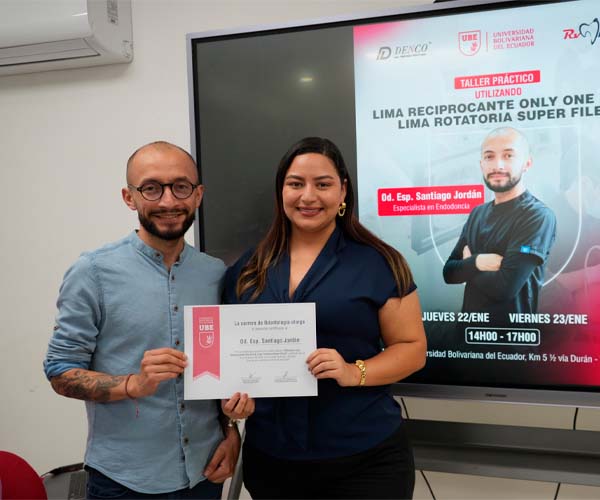 La Universidad Bolivariana del Ecuador (UBE) desarrolló el Taller práctico “Utilizando Lima Reciprocante Only File & Lima Rotatoria Super File III”, dirigido a los estudiantes de la carrera de Odontología, como parte de su compromiso permanente con una formación académica actualizada y de alta calidad.