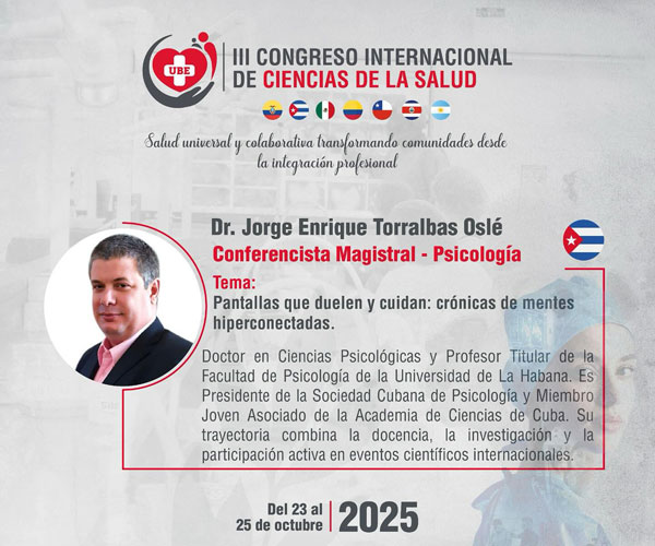 Del 23 al 25 de octubre de 2025, nos acompañará este destacado experto en psicología, quien compartirá sus conocimientos y experiencias en esta área.